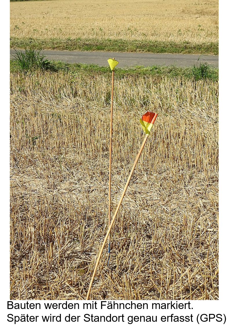 Zum Erfassen des Bestands der verbliebenen Feldhamster werden jedes Jahr systematisch die Bauten der Feldhamster in dem Zeitfenster zwischen Ernte und Umpflügen der Felder erfasst. Das geschieht indem alle Felder in Reihen abmarschiert werden. Das war auch an diesem Tag vorgesehen.