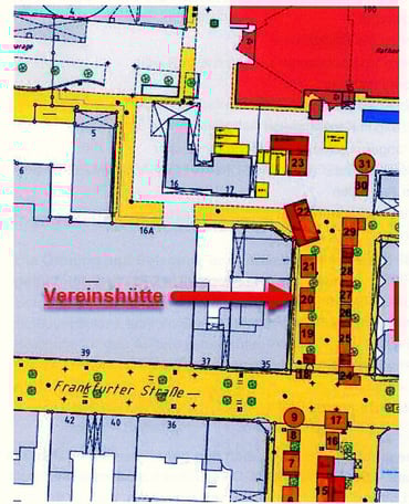 in Hütte 20 im Gang zwischen Rathaus und Frankfurter Strasse (siehe Plan).