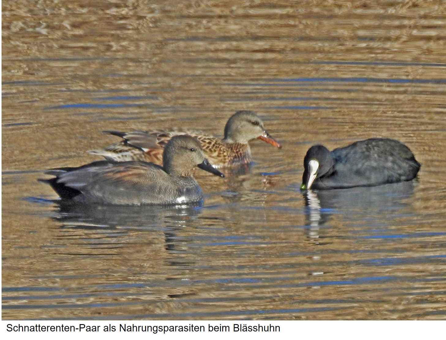 Weiter ging es zu dem Wasserkanal, wo Schnatterenten als Schmarotzer darauf lauerten, dass Blässhühner mit Grünpflanzen auftauchten, um diese ihnen abzunehmen. Immer wieder öffneten sich schöne Blicke über den See auf ausgedehnte Schilfgebiete.