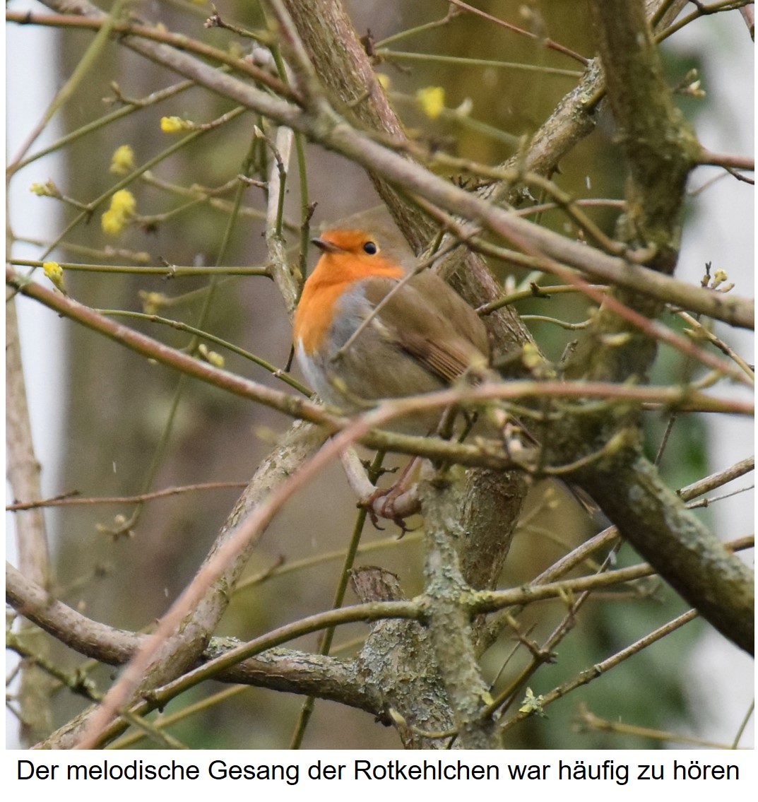 Singdrossel und Amsel deutlich zu vernehmen, ebenso wie das charakteristische „Lachen“ des Grünspechts.
