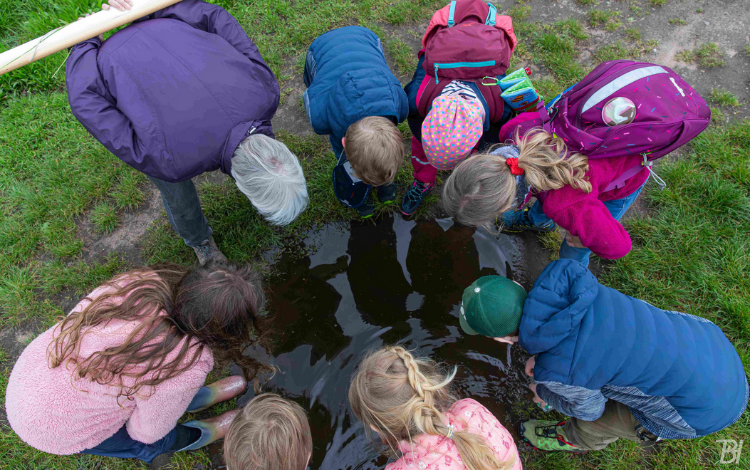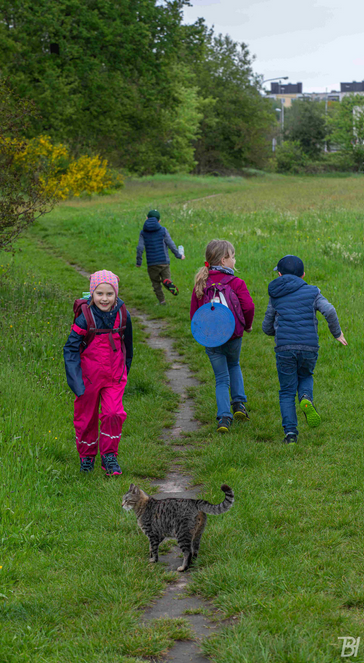 Um die Kinder auf die Stunde der Gartenvögel (9. – 12. Mai) vorzubereiten haben wir uns die typischen Vögel im Garten auf einem Plakat angeschaut. Nach einer kurzen Erklärung wie man Vögel bestimmen kann sind wir losgelaufen, um dies in der Praxis auszuprobieren. Eine Schwanzmeise, Kohlmeise, Amsel, Rabenkrähe, Ringeltaube und Gartenrotschwanz konnten die Kinder erkennen. Natürlich durfte auch das Spielen nicht zu kurz kommen. Einen heimlichen Begleiter, die "NAJU-Katze", kam mit uns mit, was zugegebenermaßen nicht hilfreich beim Vogelbeobachten ist.