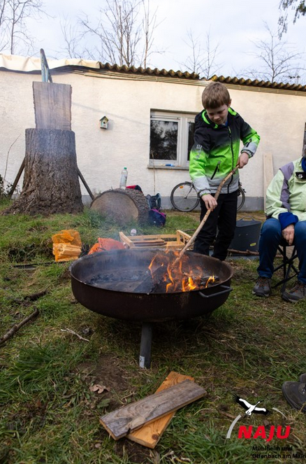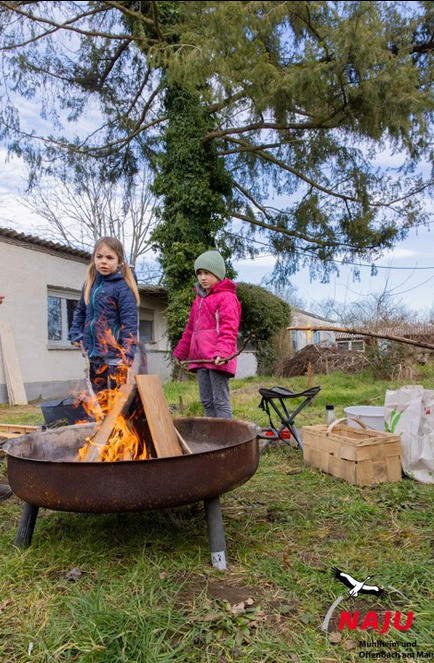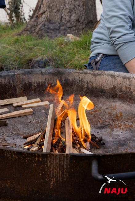 Wir haben heute endlich richtig in das Jahr 2025 gestartet. Zur Feier des Tages haben wir eine Feuerschale mitgebracht und haben versucht mit Feuerstahl ein Feuer zu machen. Nicht nur die Kinder, sondern auch wir Erwachsenen haben uns daran versucht. Zum Glück hatten wir eine Expertin dabei, die das Feuer ohne Probleme anbekommen hat.