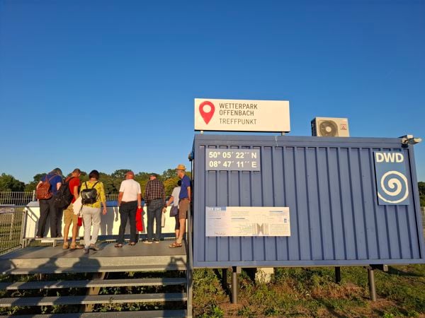 So gestärkt begaben wir uns zum Wetterpark um die Ecke. Unser "Wetterfrosch" Jürgen erklärte uns das Messfeld des Deutschen Wetterdienstes vorstellen und erläuterte uns, welche Daten wie erfasst werden.  Alle Daten werden in kleinen Intervallen an die Zentrale gemeldet. Das geht über eigene Leitungen, was die Störungen der Übertragungen vermeidet.