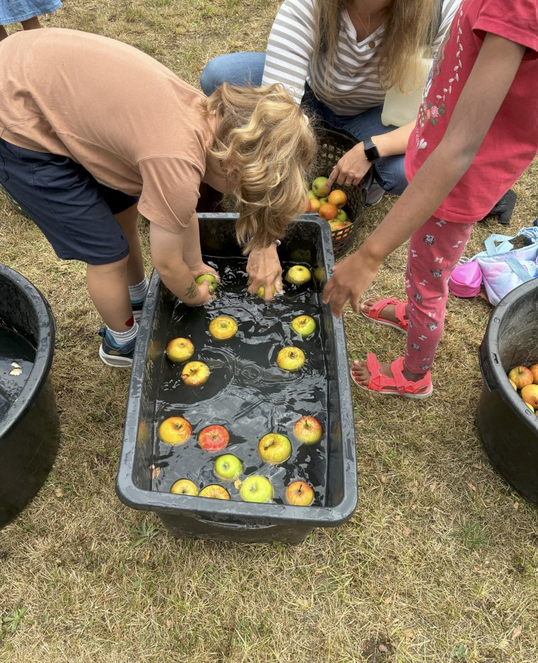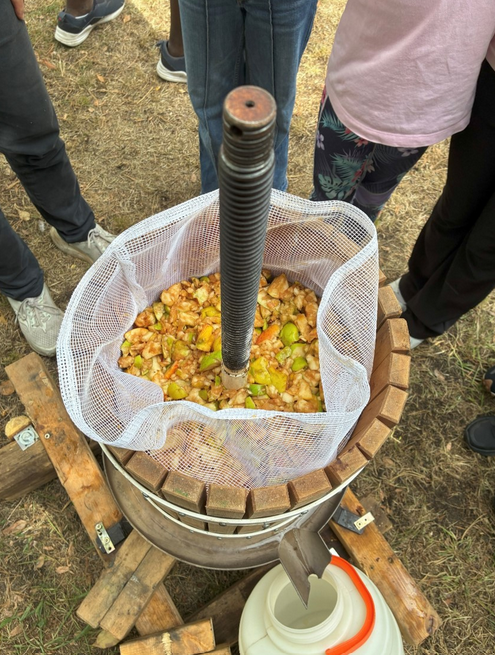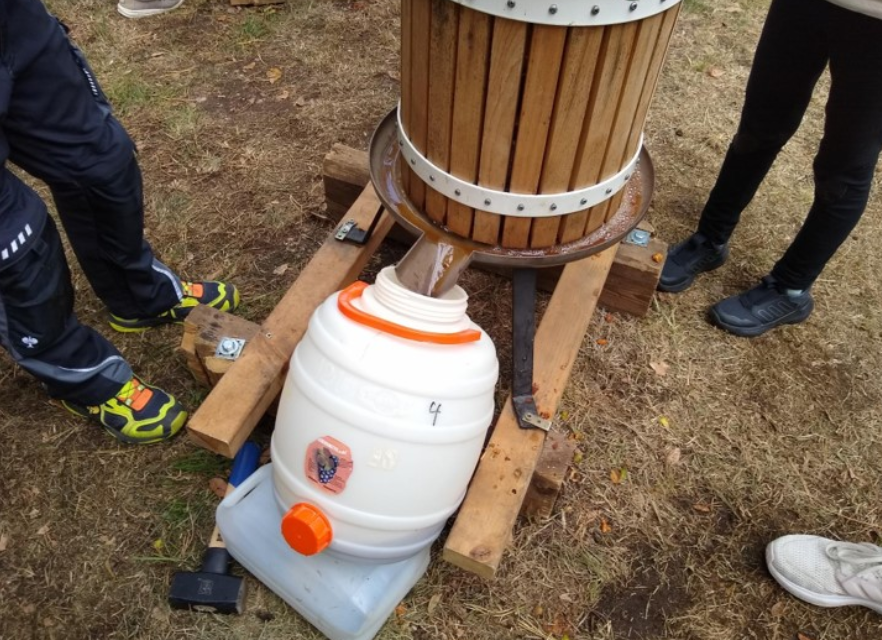 Am Freitag, dem 29.08.2025 kelterten Kinder und Eltern der Klassen 3c und 1b der Geschwister-Scholl-Schule in Dietesheim gemeinsam mit den Kindern der NAJU-Gruppe