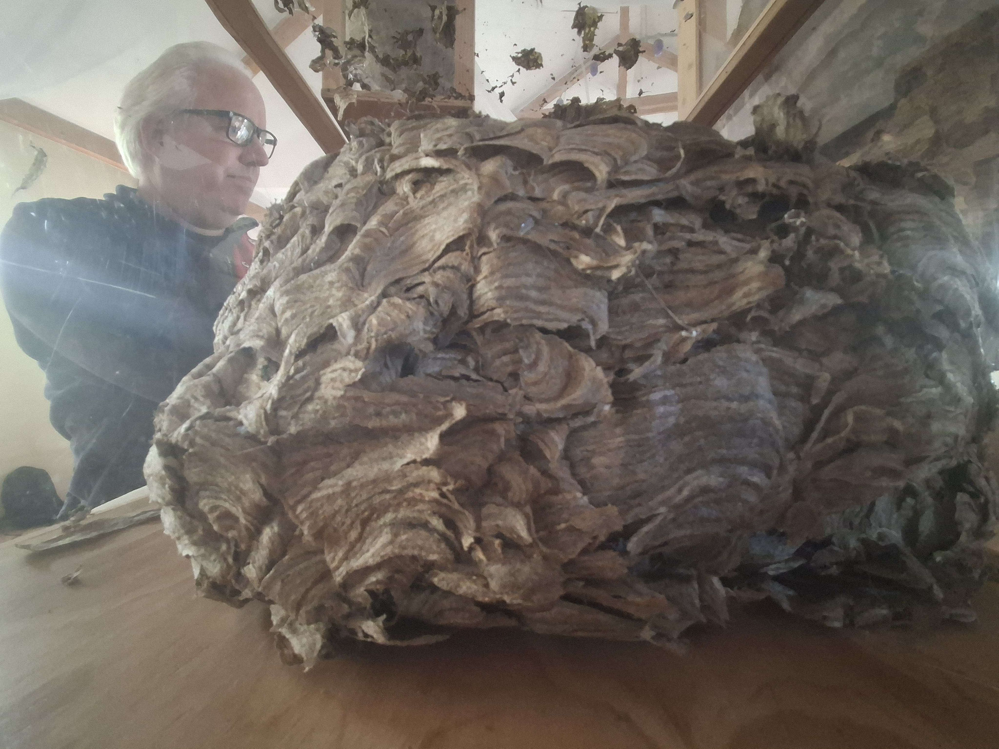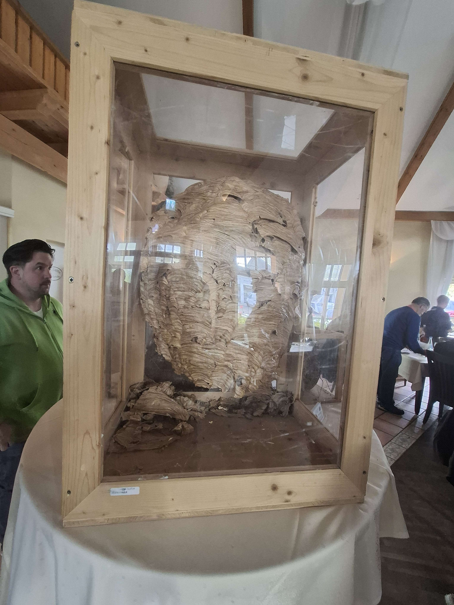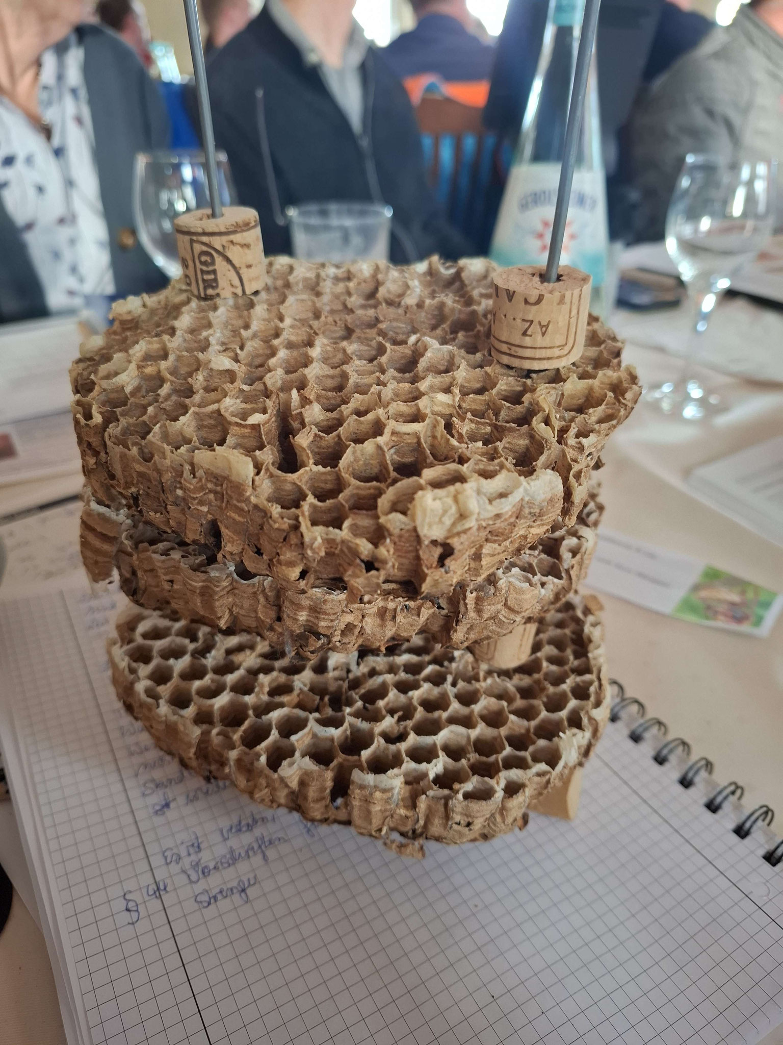 Wichtig zur Erkennung sind auch die Nester der Tiere - ihre Farbe, ihre Öffnungen, ihre Größe. Und darauf erfolgten praktische Hinweise zur Beurteilung der Situation, sowie detaillierte Anweisungen bei einer Ansieldung. Herr Tauchert hatte sogar einen Wespenstaat samt Nest mitgebracht, dessen Bewohnerinnen wir zu Demonstration selbst - mit einem Staubsauger und speziellen Schläuchen - einfangen durften.