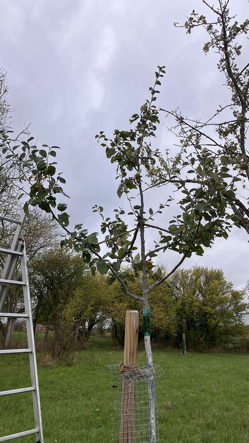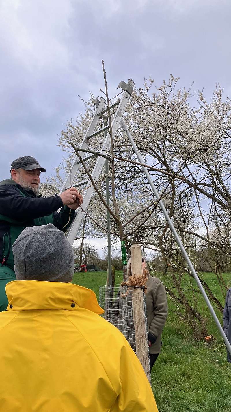 Inzwischen haben wir den Kurs abgeschlossen und unsere Erwartungen wurden weit übertroffen. Kai und Andrea haben ihr sehr umfangreiches Wissen mit uns geteilt, hatten bei den praktischen Terminen immer jede Menge Info- und Demonstrationsmaterial dabei und haben uns alle Arbeiten sehr detailliert erklärt und bis in alle Feinheiten gezeigt. Los ging es mit dem Pflanzen eines Apfelbaums, über die Pflege, über das Schneiden und schließlich zu der Ernte und der Verwertung von Obst. Ein Highlight zum Abschluss war dann die Begutachtung des von uns gepflanzten und der von uns geschnittenen Bäume. Mit unserem inzwischen geschulten Blick konnten wir erkennen, dass sie sich vorbildlich entwickelt hatten und sehr gut aussahen. Chapeau für Kai und Andrea!