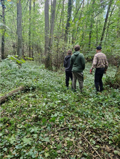Am letzten Samstag, den 28. Sept. 2024, waren wir wieder draußen. Wie geplant konnten wir mit den technischen Gartengeräten die Fläche vor der Brennholzbox frei machen, so dass die Gruppe separat von der Waldhütte eine Freifläche für die Sitzgruppe in großer Runde hat.