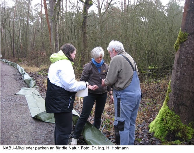 Kontrolle der Auffangeimer, dadurch den Amphibien helfen, die Straße zu queren. Betreuung der Amphibienschutzzäune.