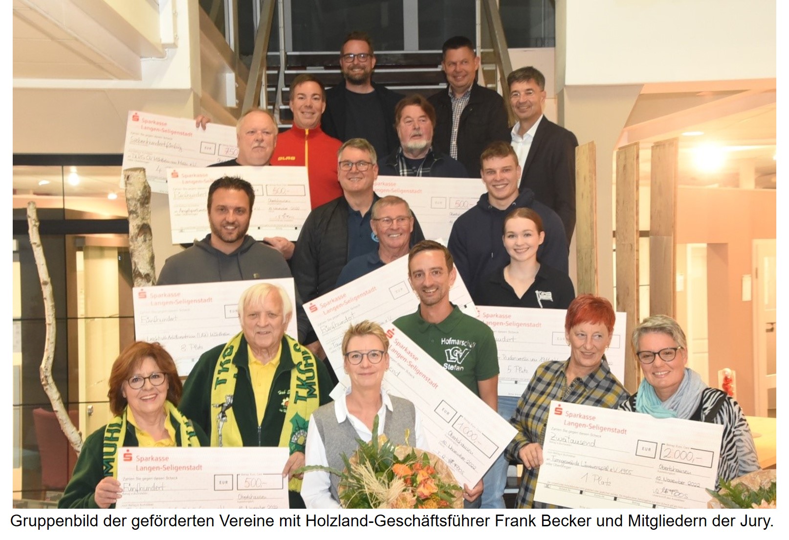Seit einem Vierteljahrhundert öffnet Holzland Becker stets im Herbst seine Vereinskasse für Vereine mit inzwischen insgesamt 7500 Euro. Ende November war es wieder soweit. Holzland Becker-Geschäftsführer Frank Becker zollte bei der Scheckübergabe den Gästen großen Respekt für das ehrenamtliche Engagement. Sein Unternehmen bemühte sich bereits in den 80er und 90er Jahren um Vereine, unterstützte sporadisch, aber nur individuell ihre Anliegen. Doch jetzt wählt von den eingereichten Gruppierungen eine Jury zunächst stets zehn Vereinsprojekte aus, die dann in der Offenbach Post für eine wertende Rangfolge von der Leserschaft vorgestellt werden. Die Leserschaft, insbesondere natürlich die Vereine, mobilisieren Zustimmungen, die dann im Netz abgegeben und erfasst werden.