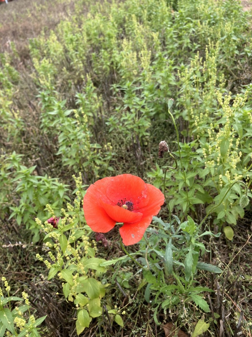 Die Ansitze für Vögel wurden sehr schnell angenommen. Und auch am Boden zwischen den Stoppeln des abgeernteten Getreides zeigte sich bald frisches Grün und auch erste Insekten konnten schon angetroffen werden.