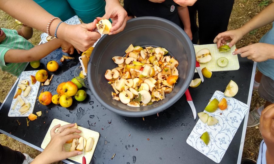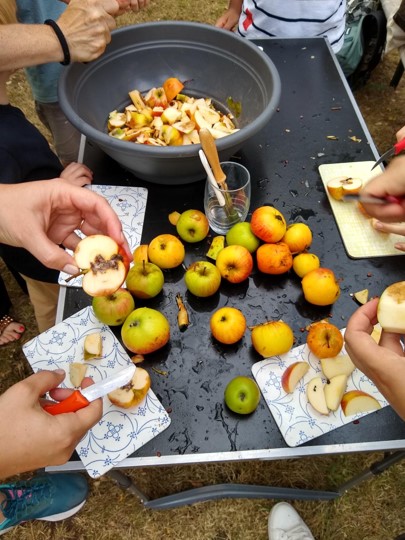 Eltern und Kinder genossen zusammen mit den NABU-Mitgliedern nach getaner Arbeit den ausgesprochen leckeren Apfelsaft.