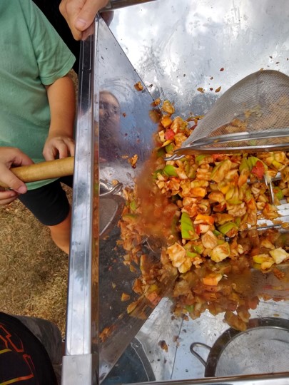 Waschen, Schneiden, Schreddern, Pressen, Trinken
