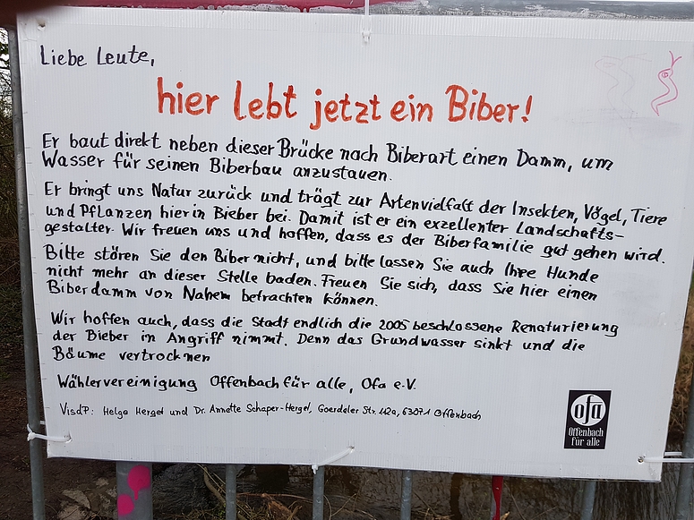 Es bleibt abzuwarten, wie es weiter geht mit dem Biber in Offenbach und es ist zu hoffen, dass der Biber eine gewisse