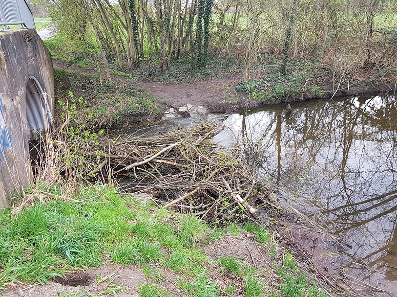 Tatsächlich war es dann Anfang 2023 soweit: Von der Brücke über die Bieber in der Nähe der Obermühlenstraße war ein Biberdamm zu