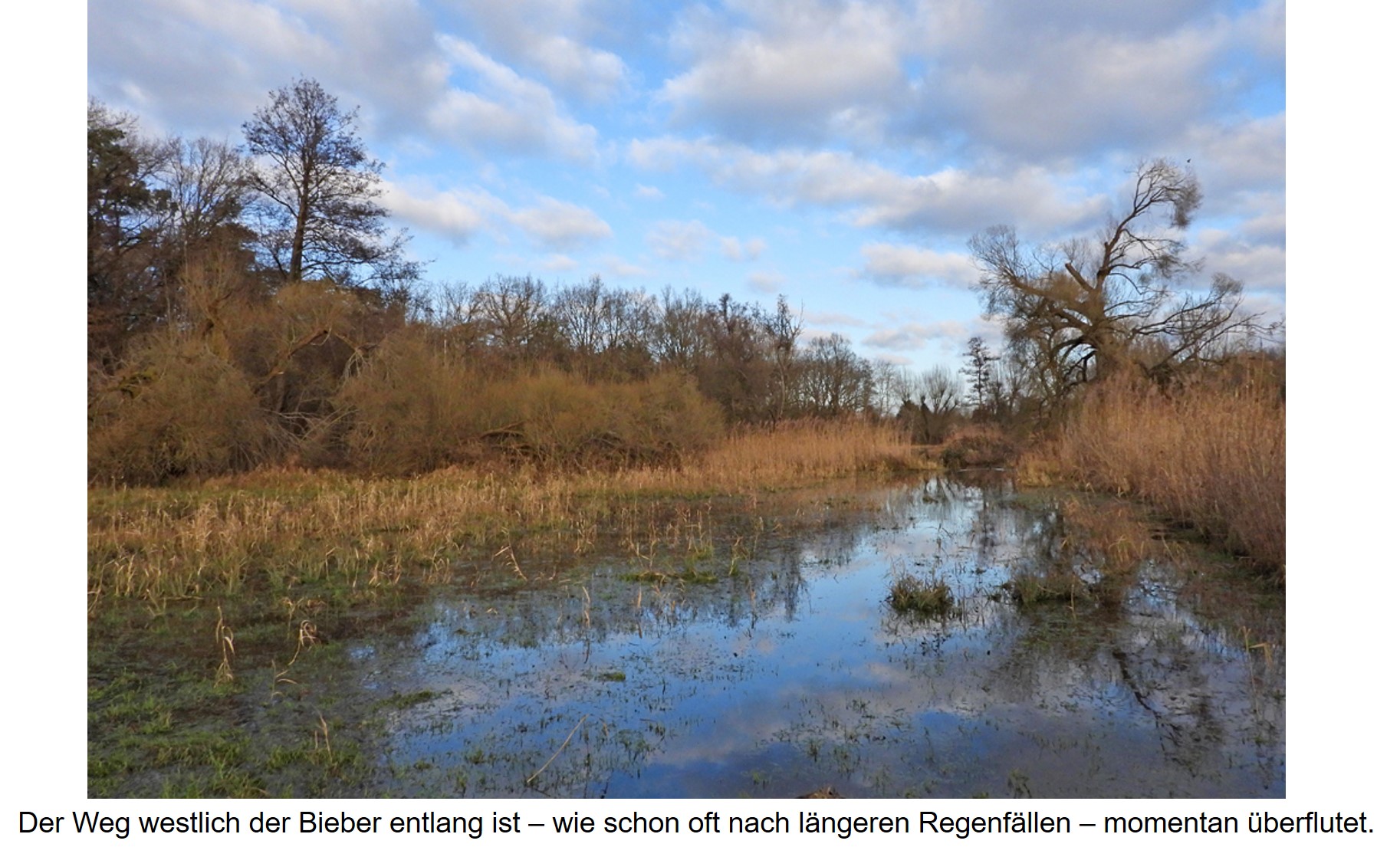 Ganz so neu wie in den Medien dargestellt ist der grandiose Anblick allerdings nicht. Je nach Niederschlagsintensität oder auch Schneeschmelze hat die Bieber auch vor Ankunft des Bibers immer mal wieder ihr Bett verlassen und die umgebenden Auwiesen geflutet.