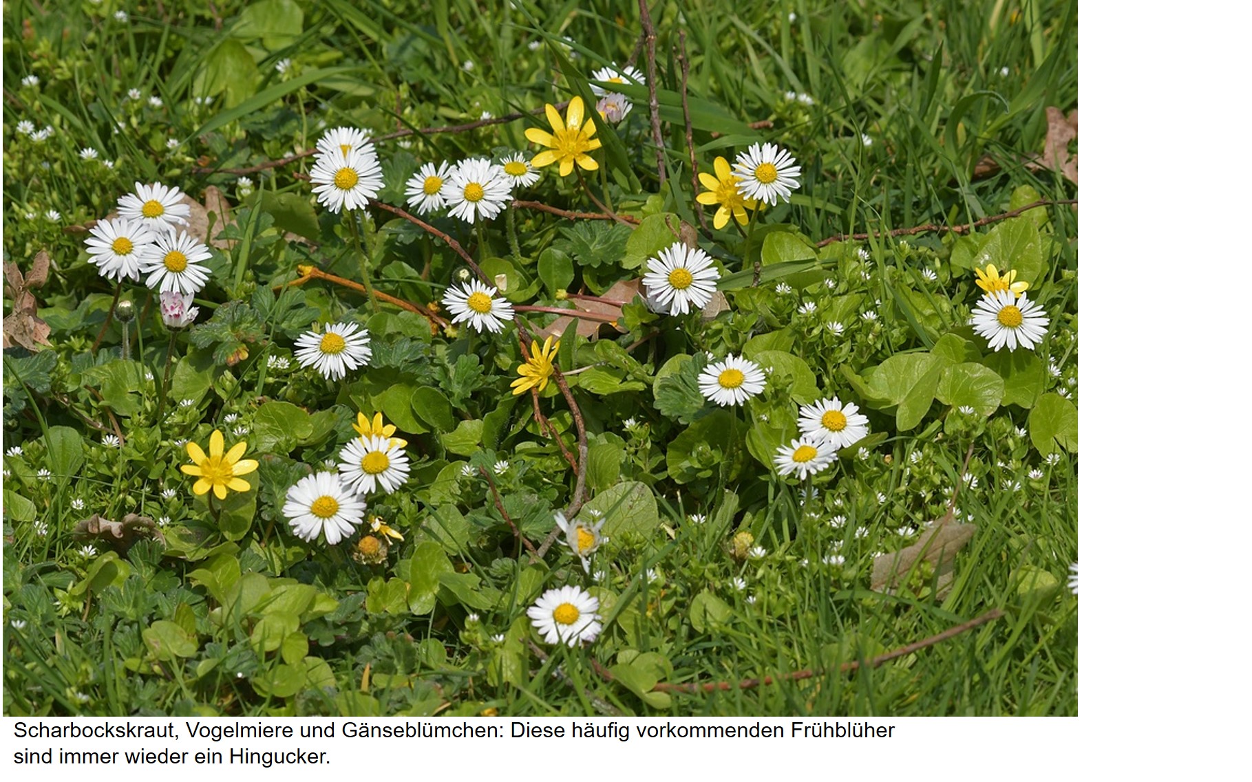 Die Pflanzenwelt des Rumpenheimer Schlossparks ist zwar stark nach gärtnerischen Aspekten gestaltet, es bleibt jedoch genug Raum für zahlreiche Frühlingsblüher, die niemand angepflanzt hat.
