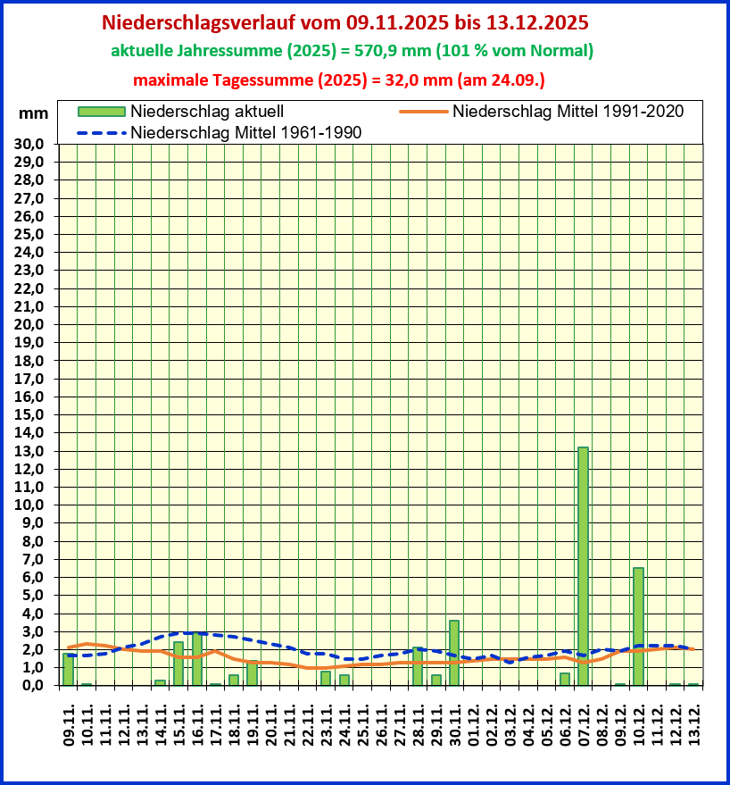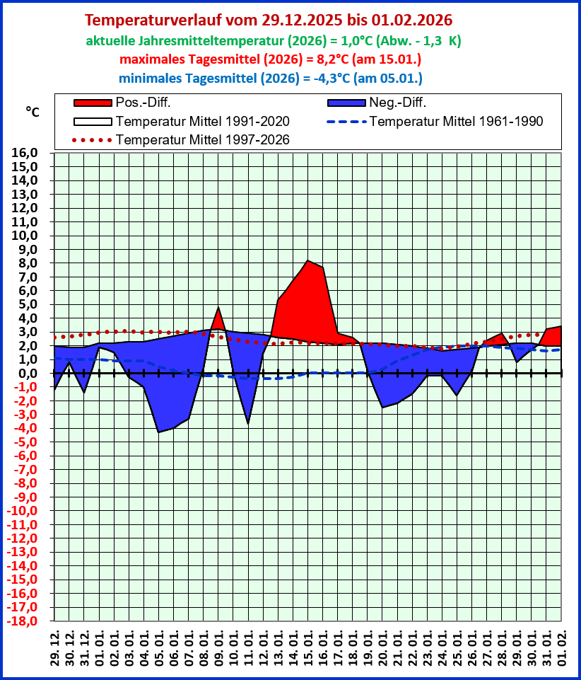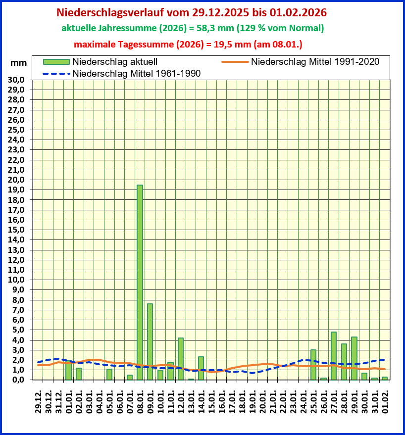 Der Bezugszeitraum der laufenden Mittelwerte sowie der Maxima und Minima beginnt am 01.01. und endet an dem in Klammern angegebenen "bis-Datum" der Angabe im Diagrammkopf.