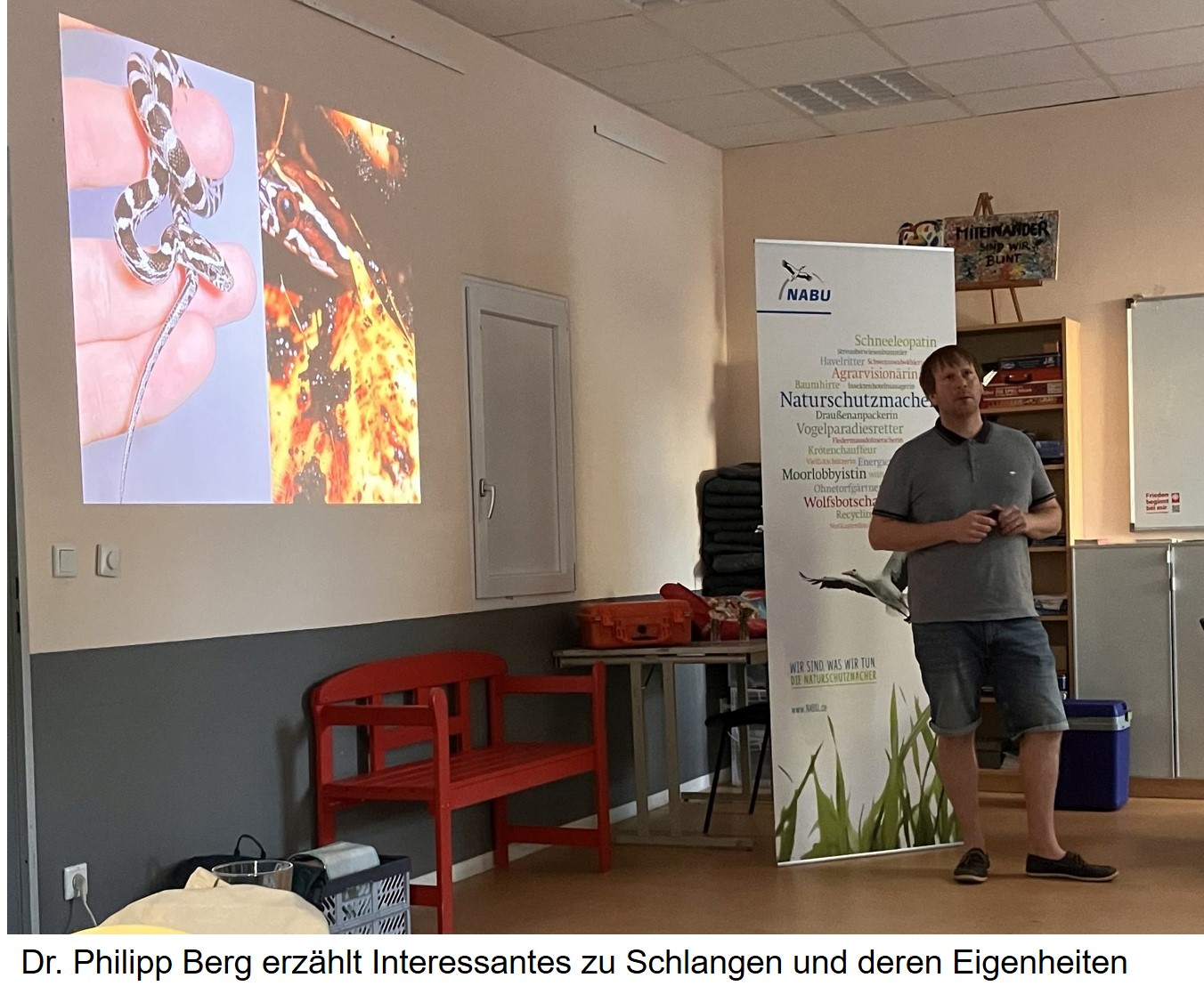 Zu einem sehr interessanten Abend über Schlangen lud unsere Ortgruppe am 27.08.2024 ins Stadtteilquartier im Lauterborn ein. Das Angebot von Dr. Philipp Berg etwas über Schlangen zu erzählen und dies mit einer Umfrage zu verbinden wurde gerne angenommen. Es passte gut in das Konzept an dem NABU-Mitgliedertreff den Interessierten Infos rund um die Natur und unsere Vereinsarbeit zukommen zu lassen.